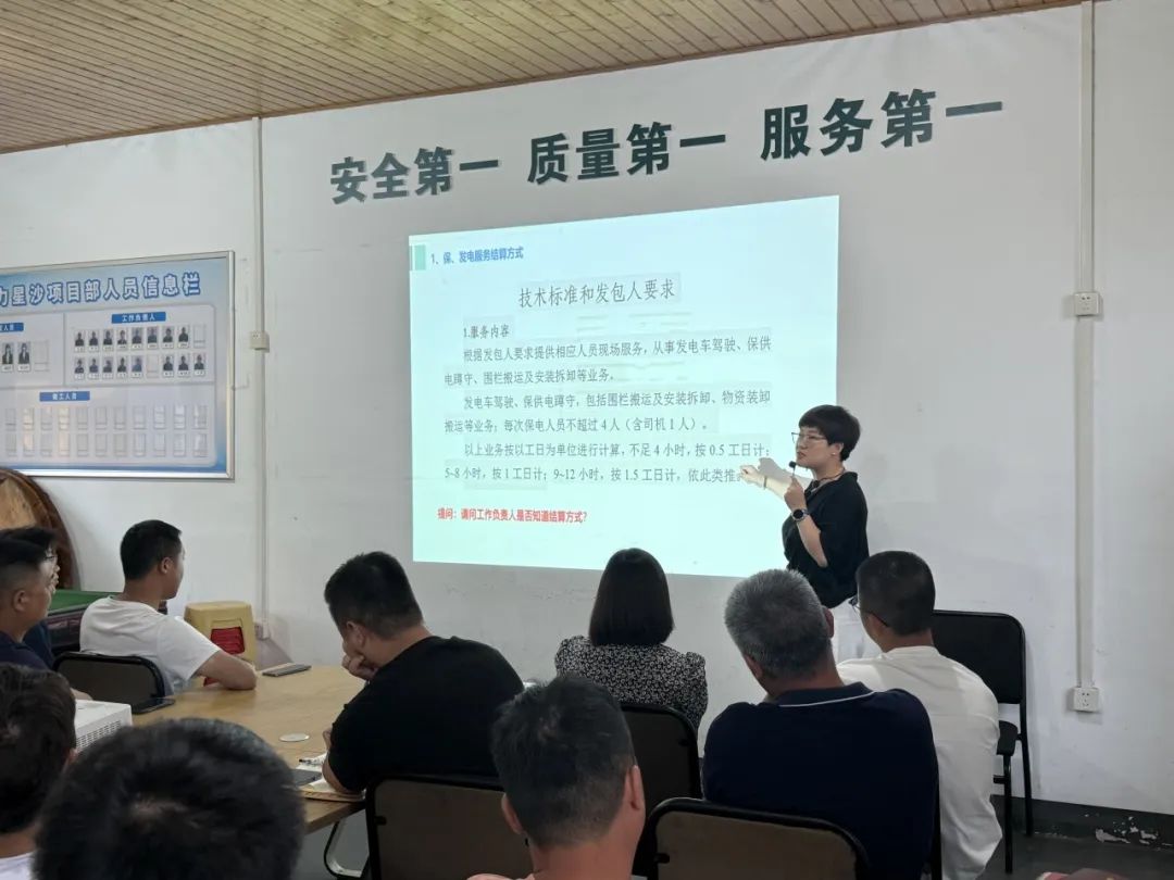 培训开场,汤总以某保发电项目为案例,指出该项目在结算审核时,出现因影像资料不符合要求(有开工照片、无完工照片)、不完整(照片中无发电车)及缺乏逻辑性(开工照片与完工照片的人数不一致)导致被核减工日的情况。基于此案例,汤总现场提出一系列具有针对性的问题: